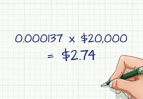 Calculate your daily interest payment. Multiply your daily interest rate by the total borrowed (or drawn). In the example, this would be 0.000137*$20,000, or $2.74.