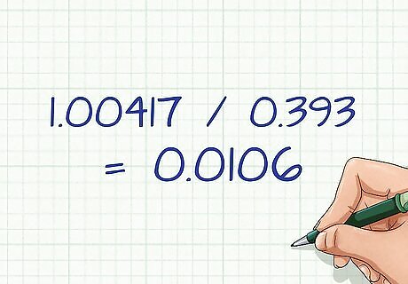 Divide your monthly interest rate by the result. That is, use your monthly interest rate (without the added one). So, in the example this would be 0.00417. Take this number and divide it by the result of the last step. So, 0.00417/0.393=0.0106.