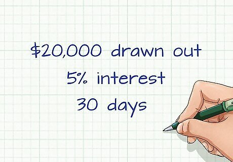 Locate the paperwork on your loan. This will give you the information you need to calculate your payments. This information includes your outstanding balance and interest rate charged. For example, imagine that you have a HELOC on which you currently have $20,000 drawn out. This HELOC charges 5% interest. You are currently preparing to receive a bill for the month of April, so you will be paying interest for 30 days (interest is calculated daily).
