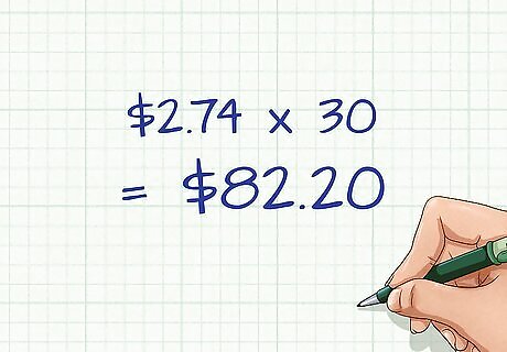 Multiply the answer by the number of days in the month considered. This would be 28 for February, 30 for September, and so on. If you are still in your draw period, this is your monthly payment. In the example, your monthly payment for April would be $2.74*30, or $82.20.
