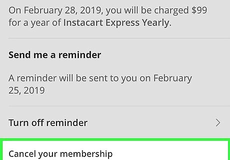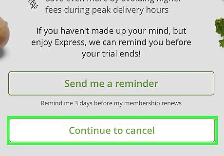 Confirm the cancellation. You can continue to use Instacart Express until the final date in the current billing cycle.