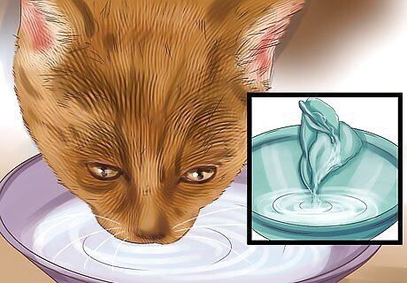 Make sure the cat has water. Cats need constant access to water in order to stay properly hydrated. Make sure that their water is clean and cool. Be sure to change it daily so that it is fresh. If your cat is interested in running water, consider getting it its own drinking fountain. There are a variety of cat drinking fountains available that recirculate water constantly, attracting your cat to come and drink, and maybe to play around in the water a little bit.