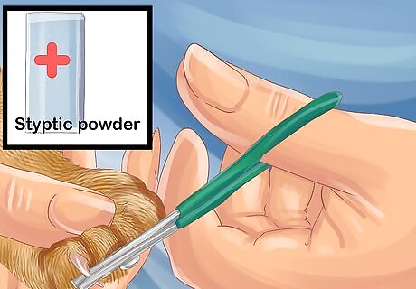 Trim the cat's nails. Like with all cats, it's important to trim the Devon rex's nails on a regular basis. You can use a pair of pet nail trimmers or human nail trimmers. Hold the cat's paw in one hand and the clippers in your other. Make sure to only trim the very tip of the nail so that you can avoid cutting the quick, the vein inside the nail. The more often you trim your cat's nails, the more comfortable with the procedure the cat will get. You will have to trim very little nail each time. Keep styptic powder on hand in case you cut the quick. If you cut the quick, place a little pressure on the tip of the nail and place a small amount of styptic powder on the tip. Once the bleeding has stopped, clean the area with mild soap meant for cats. Cleaning the area will assure that no infection sets in.