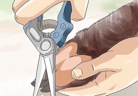 Clip your llama's nails . Most llamas will never need to have their toenails trimmed because sufficient exercise will cause then to wear down naturally. However, if your animal comes into contact with a hard surface, they may need a trimming every 2 to 3 months. If your llama does need its nails trimmed, use a pair of large animal nail clippers and make sure that the nails are flush with the bottom of the footpad.