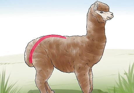 Score your llama. Because its fleece can mask its size, you should score you llama regularly. Simply, feel the thickness of the animal’s back at the base of its neck and give a gentle squeeze. If the back is “U”-shaped, the llama is the correct weight. If it is “V”-shaped, your llama is underweight. If it is flat, your llama is overweight.