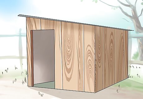 Create a shelter. In most climates, a three-sided shelter will sufficiently protect your llama. Your animal needs to be warm and dry in the winter, and cool in the summer. Because they are naturally conditioned for cooler climates, a llama may not need a barn since its fleece will help keep it warm. However, if you already have barn, use it. Your shelter should be at least seven feet (2 m) tall and wide enough to accommodate multiple llamas.