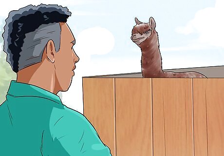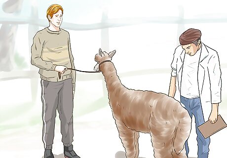 Take your llama to the vet. Once you have purchased your llama, have your veterinarian give it an evaluation. If it has not already received them, your llama will also need its vaccinations. Depending on where you live, you will also likely need to have your llama dewormed at some point. You should also have your veterinarian check the overall health of the animal so that you can better understand what, if any, dietary supplements you need to provide. Generally, llamas are hardy animals that do not need much veterinary care. However, it is important that your local vet know your animal in case it ever needs medical attention.