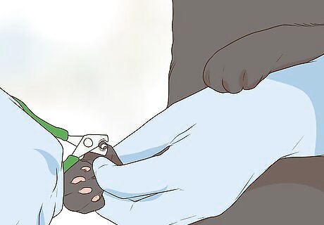 Trim your cat's nails every two weeks. Your American curl cat's nails should be trimmed every couple of weeks. Plan to trim its nails when the cat is sleepy and relaxed. Gently massage your cat's paw's for three seconds, and allow your cat to sniff the clippers before you begin. Clip only the white tip of the nails. Find a local groomer or ask your veterinarian to trim its nails if you do not wish to do this task at home.