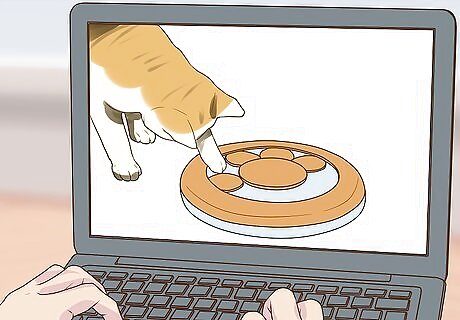 Stimulate their mind with puzzle toys. American curl cats are highly intelligent. Provide your cat with challenging puzzle toys to prevent boredom and satisfy their curiosity. Purchase a food board puzzle online or at your local pet store. To earn a treat, your cat will need to solve the puzzle and move pieces around the board to access it. These toys can cost around $20 U.S. Make an interactive toy at home. Poke some holes in an empty water bottle, fill it with a few treats, and secure the plastic lid. Let your cat play with the toy to release the treats. This will allow your cat to exercise its hunting and jumping skills.