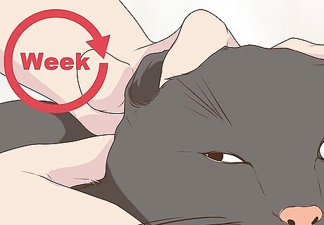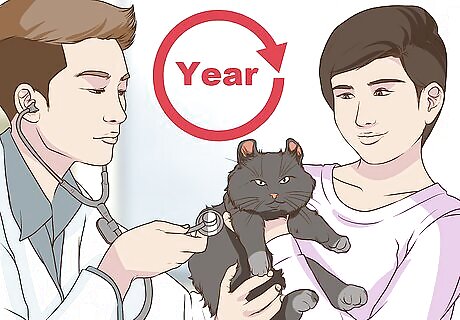 Take your cat for a yearly checkup. Your American curl cat should be seen by the veterinarian at least once a year for a general examination and to receive its annual shots. You should also take it to the vet regularly to keep it up-to-date on its deworming and parasite control, such as flea treatments. If your cat is ill or injured, be sure to take it to the clinic immediately.