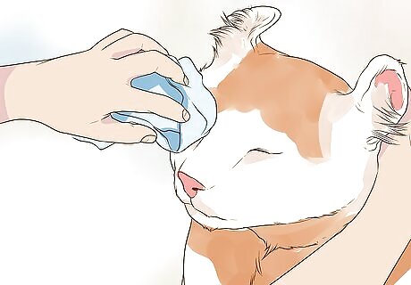 Remove eye discharge with a damp cloth. If you notice eye discharge building up in the corner of your cat's eyes, use a damp, warm cloth to wipe the area clean. After you wipe one eye, use a different portion of the cloth to wipe the other. This will help prevent bacteria or infection from spreading from one eye to the other.