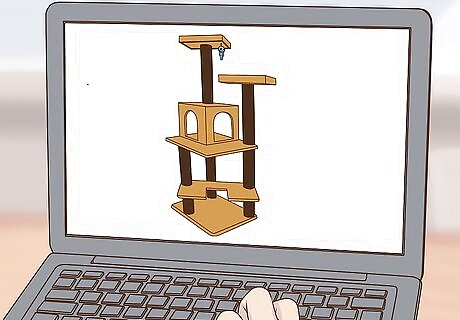 Give your cat places to climb. American curl cats love to climb, perch, and jump. Provide your cat with a cat tower or cat tree so they can climb safely and securely. While sitting on top of a cat tower, your cat can survey its environment and burn off some of its abundant energy by leaping and climbing. Buy a cat tree or tower online or at your local pet store. They come in various sizes and heights and cost between $50 and $150.