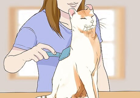 Groom a short-haired cat weekly. This breed comes in both long and short-haired varieties and has a smooth, silky coat that lies flat. This breed does not have an undercoat, which means it sheds very little. A short-haired American curl cat requires very little grooming and needs only to be combed once a week. Run the comb backwards through the short-haired cat's coat to help remove dead hair.