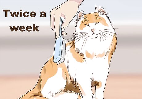 Brush a long-haired cat twice a week. If you have a long-haired American curl cat, plan to brush its coat twice a week. This will help prevent the fur from matting and becoming tangled. Consider brushing a long-haired American curl cat more frequently during the warmer months, since it sheds more during this period.
