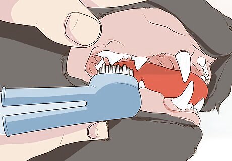 Brush your cat's teeth at home. To keep your cat's teeth and gums healthy and clean, plan to brush its teeth at least once a week. Brushing helps prevent tartar and plaque build-up, which can stop periodontal disease. Use a toothbrush and toothpaste that is designed specifically for cats and is approved by your veterinarian. If you have an American curl kitten, begin to brush its teeth at an early age so it becomes accustomed to this process.