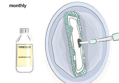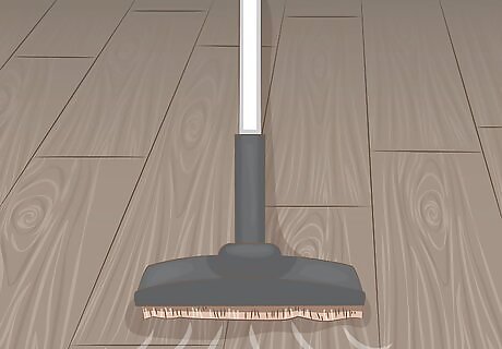 Vacuum with a soft flooring attachment as an alternative to dry mopping. Regular vacuuming is important in order to remove dirt, dust, and debris from the floor. When vacuuming, use a soft flooring attachment in order to be as gentle on the floor as possible. Be sure to use a hardwood setting on your vacuum as well.