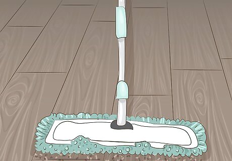 Clean your floors with a dry microfiber mop to remove debris. A microfiber mop is ideal for cleaning laminate floors because it easily picks up dirt, crumbs, and pet hair. Whenever you notice that your floor looks dirty or dusty, run a dry microfiber mop over it to clear away the debris. If you don’t have a microfiber mop, you can also use terry cloth or cotton.