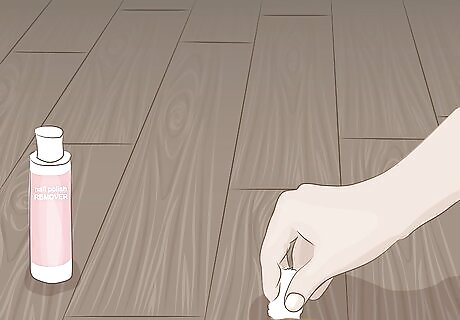 Remove stubborn stains with nail polish remover or rubbing alcohol. It is important to clean up stains as soon as possible so they don’t set in. Stubborn stains, such as paint, oil, tar, and marker, can be removed with an acetone-based nail polish remover. You can also use rubbing alcohol to remove these types of stains. Just pour a small amount of nail polish remover or rubbing alcohol on a soft cloth and use it to scrub the stain. Repeat if necessary.