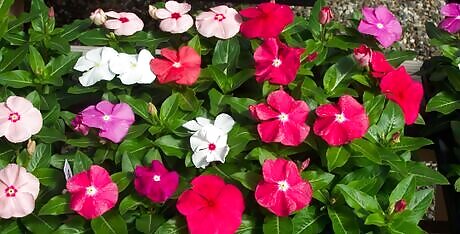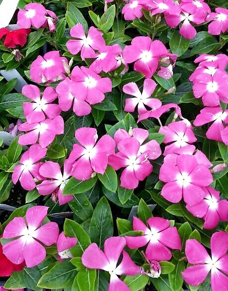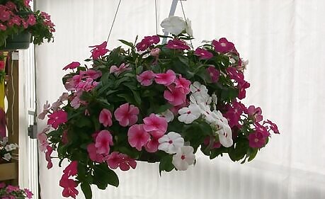 It's best in a summer garden but can be grown indoors in a sunny, hot window. It has shiny green leaves and has either pink, white or red flowers depending on which variety you purchase. Over the last 30 years, breeders have increased the flower size and introduced many colors.