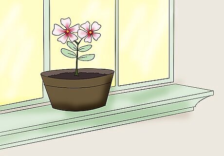 Place the Madagascar periwinkle in direct sun indoors. A sunny windowsill is ideal or a south-facing room (northern hemisphere) or a north-facing room (southern hemisphere). Avoid growing the plant in conditions under 15C (60ºF).