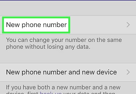 Select your country and type your new phone number. Tap the country drop-down box under the 'My new number is' heading and tap the country your new number is registered in. Then type in your new phone number in the field below.