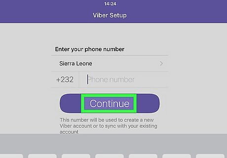 Tap Continue. It's the purple button at the bottom of the page. You will receive a confirmation code via text message.