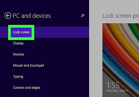 Press ⊞ Win+C to open the Charms menu. You can also do this by swiping in from the right side of the screen, or by hovering the mouse in the screen's top-right corner. It's not possible to change the image that appears in the background of the Windows 8.1 login screen, but you can change the background of the lock screen, which appears before you enter your login information. This method will help you change the background of the lock screen.