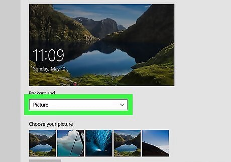 Select Picture from the "Background" menu. This drop-down menu is below the image of your existing background. This lets you choose a specific image from your computer to appear on both the lock screen and the sign-in screen.