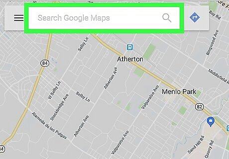 Click the search bar. The search bar is labeled "Search Google Maps" in the upper-left corner of the window. It will let you search any location on the map.