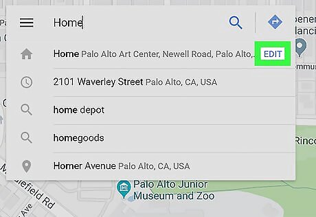 Click the EDIT button. This button is located next to your saved home address in the upper-right corner of the drop-down list. It will allow you to edit the saved address.
