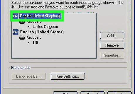 Select English (United Kingdom) from the "Default input language" menu. It's at the top of the window.