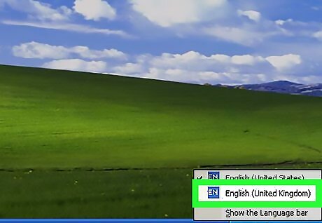 Click English (United Kingdom). You have now switched from US English to UK English. Hover your mouse cursor over the Language Bar at any time to see which language you're using.