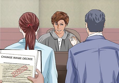 Attend your hearing or pick up your decree. You may be required to attend a hearing, or the clerk may simply notify you that your 'Name Change Decree' is ready. Depending on the specifics of your case and of your county, the court may hold a hearing simply in order to have an official statement from you. This does not mean your petition is in question.