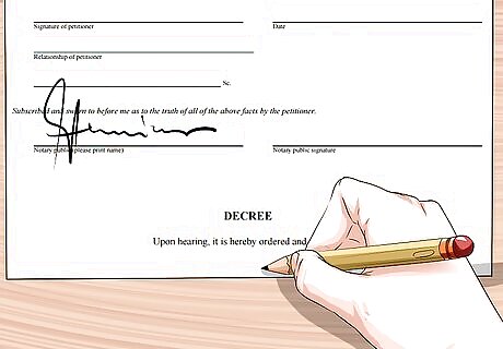 Sign the form before a notary. You must submit the notarized name change form. You can find a local notary online or by asking the court for a referral.