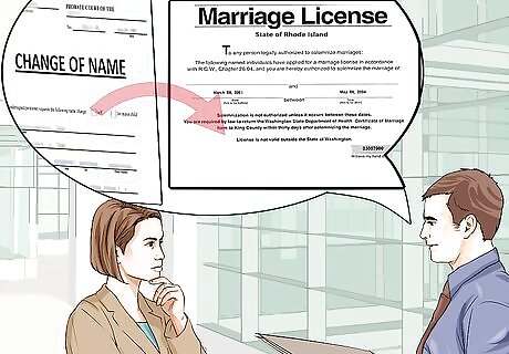 Check if official name change petitioning can be added to your marriage license. If you know you will be changing your name when the marriage license is drawn up, see if the name change can be included. In some counties or rulings, further petitions like name change can be included in the legal process of marriage, but in others the license will only list the birth names of the individuals who are marrying. If you can add petitioning to your marriage license, then your options for name changing will be much wider.