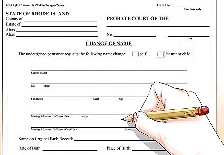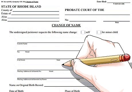 Complete a standard petition form. If you want to change your first, middle and/or last name for any reason, you have the legal right to do so in the state of Rhode Island. In order for your new name to be legally recognized, you must petition the court. In all cases other than adult adoption or marriage, the standard form is the Rhode Island Name Change Petition. If you are changing your name for any reason other than adult adoption, and you need to petition for a name change, print out this form and fill it out. (You do not need to petition if you are taking your spouse's last name.)