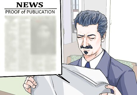Publish the news if the court requires it. This is not actually required by many courts, but you could be asked to print an announcement. Publishing a name change can be done by publishing an ad in the newspaper where you reside that states your former and new name. Upon completion of this step, you will be granted a 'Proof of Publication'. If you have been legally asked to announce your name, you will need to bring this to a hearing so make sure to keep track of it!