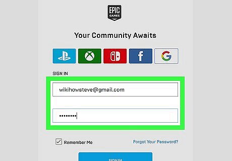 Sign in to your Epic Games account. Enter your email address and password, and click the blue SIGN IN button. If you don't have an account, click the blue Sign Up option at the bottom. Alternatively, click one of the PSN, Xbox, Nintendo, Facebook or Google icons here to sign in with one of these accounts.