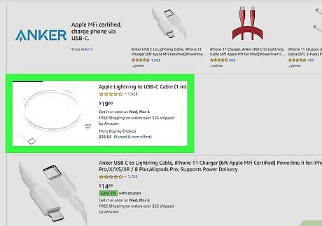 Find a charger for your phone. You'll need a USB-C to Lightning Cable and a 30W adapter with a USB-C port. All iPhones 5 and up have the same charging cable and port, so you can use a cable from an old phone.