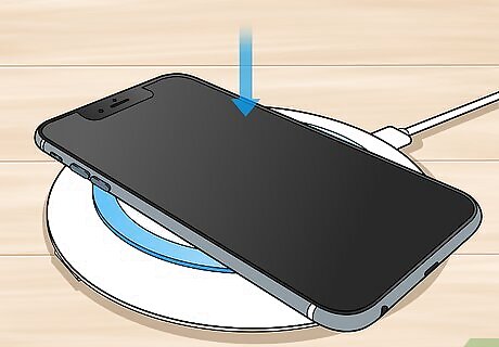 Place your iPhone (face up) on the charger. For best results, you'll want to center your iPhone on the charging pad. Once you've centered your iPhone on the charging pad, you should hear a battery charging noise and see a lightning bolt in the battery icon on the screen to indicate that it's charging. Some charging pads have an LED light on the front of the charging unit to indicate charging activity.