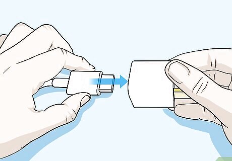 Connect the USB-C side of the cable to the power adapter or USB port on a computer. You can plug your iPhone into the power adapter for a wall outlet or you can plug it into your computer to charge. You'll get faster charging if you plug the phone into the power adapter for the wall outlet. If you plug the USB end of the charging cable into your computer, skip the next step.