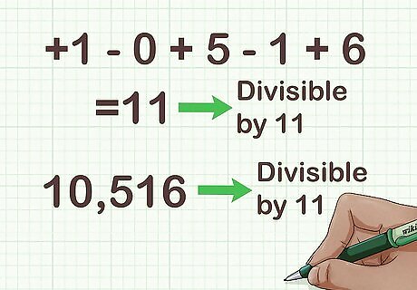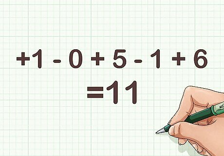 Add and subtract the digits. Now treat this like any arithmetic problem, adding and subtracting the digits together: +1 - 0 + 5 - 1 + 6= 11