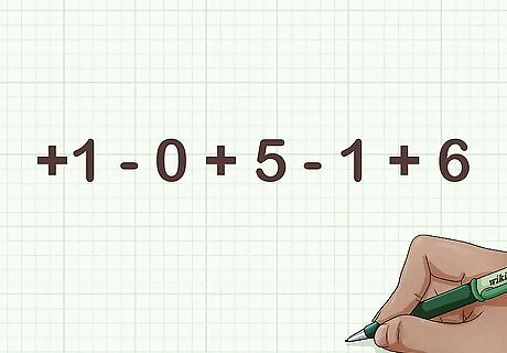 Keep alternating the + and - signs for all digits. Add a + sign in front of the third digit, then a - sign in front of the fourth, and so on until you reach the end:+1 - 0 + 5 - 1 + 6