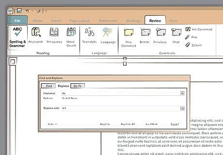Search the document for mistakes you commonly make. If you know that you consistently make a certain mistake, use the “Find in document” function to check for the error. Type in the word that you tend to mix up and see if you’ve made the error anywhere in the document. Suppose you always mix up “its” and “it’s.” Press the Control and F keys on a PC or Command and F on a Mac to load the “Find in document” function. Search for “its” and make sure you've correctly used that word as a possessive. Then search for “it’s” and make sure you've used that word as a contraction for “it is.”