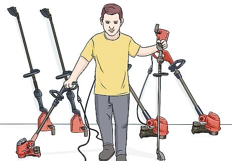 Go to a store to try out trimmers in person to find the right one. Even if you know what features you're looking for in a trimmer, always try them out in person before buying one. That way, you can feel if the weight, balance, and height is correct for you. Visit a local hardware store to see the options that are available. You don't have to buy the trimmer in the store if they're cheaper online. Go to the store and try some out. Then, when you find one you like, look for it online.