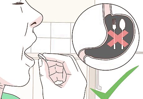 Take the iron supplement. It is best to take the iron supplement on an empty stomach to facilitate absorption, either with water or fruit juice. This means one or two hours before meals. If taking iron on an empty stomach makes you sick, you should take it right after meals, although this will make it harder for your body to absorb it.