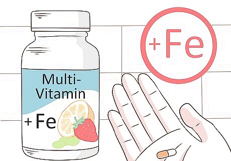Choose a multivitamin supplement containing iron. Most children and adult multivitamins contain the recommended daily dosage of iron. If your deficiency is not severe, you might simply increase your daily intake in this form. Read the label to check the amount of iron contained in the multivitamin supplement and see if it corresponds to the dosage recommended by your doctor.