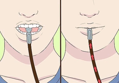 Place the tube in your mouth. Bite down on the tube and suck inward, just as you would when drinking from a straw. The suction power should allow the water to come out of the tube. Swallow the water until you’ve had enough, then release the drink tube. Clip it to the hydration pack strap on your chest. Detach it when you’re ready for another drink. Some drinking tubes might require you to twist a valve on the bite piece open. If you have a pressurized hydration pack, you’ll need to build the pressure inside the pack by squeezing the pressure valve (attached to the air tube) eight to ten times before biting down on the drink tube.