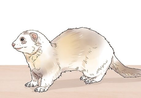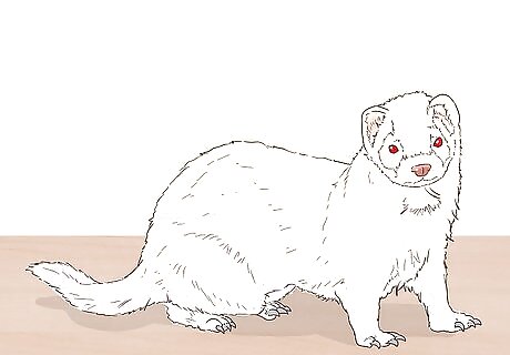 Get an albino ferret if you like a white coat. Albino ferrets are known for their pure white fur and pink or red eyes. They have beautiful pure white coats that will stay white their entire lives. They are often used as therapy pets, as they are easy to spot. Get an albino ferret if you don't mind some extra cleaning. Albino ferrets will need to be bathed once a month to maintain their white coats. However, you should not bathe them more than once a month, as this can cause skin and coat problems. Albino ferrets will also shed white hair on your clothing, so be prepared to avoid wearing black and dark colored clothing around your ferret. You will also need to have a lint brush handy to remove the white hairs.