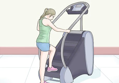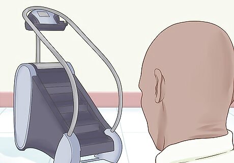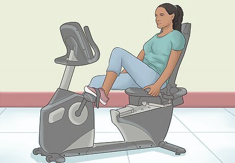 Select machines that offer low-impact exercise options. Exercise can be beneficial for hip pain, but it is important to do exercises that are low-impact. High-impact exercises are less likely to agitate your hips and lead to more hip pain. For example, you might use an elliptical machine for a cardio workout. If you're using an exercise bike, keep in mind that biking in a recumbent position is more comfortable than sitting upright. If you are considering getting a stair machine, then it would be important to make sure that the machine has a low-impact setting, such as shorter strides and gentle steps.